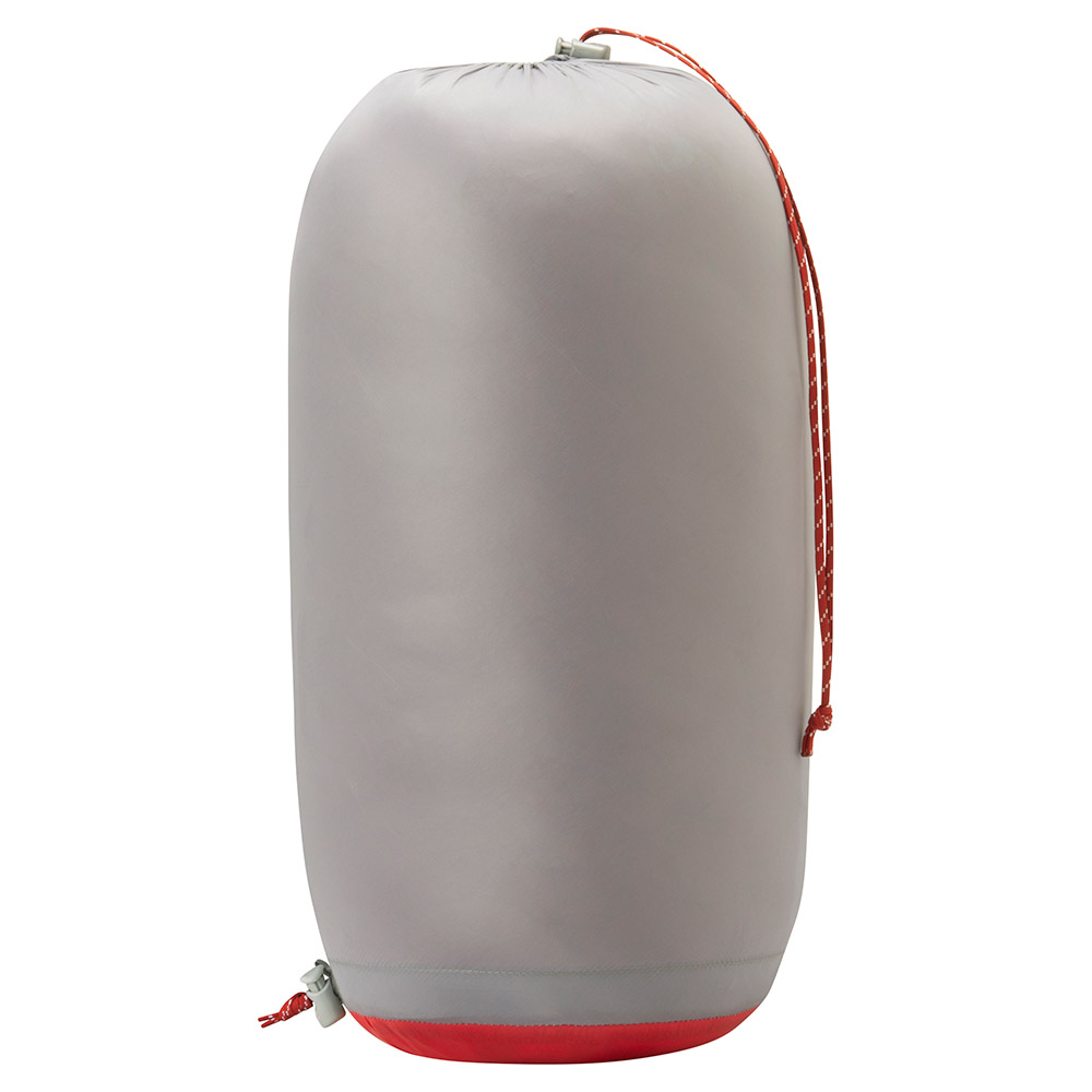 収納後、さらにボトムを絞ることで、2段階に圧縮が可能。レギュラーモデルと比較し、よりコンパクトに収納しやすいスタッフバッグが付属します。