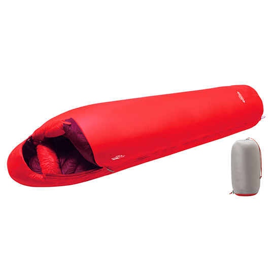 女性が快適な睡眠をとれるように設計した軽量スリーピングバッグ。高品質な800フィルパワー EXダウンと、はっ水加工を施した超軽量シェル素材を使用。ダウンの片寄りを防ぐための隔壁を廃した、画期的な「スパイダーバッフルシステム」を搭載しています。国内3,000m級の冬山で使用できる保温性を備えたモデルです。