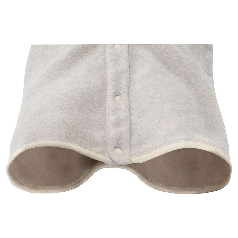 就寝中、寝返りなどにより布団から出てしまった際の寝冷えを防ぐ、暖かいフリース地を使用したスリーパー。太もも辺りまでしっかりとカバーできる着丈です。成長に合わせてベストとしても着用可能。前面の一番下のホックと、背面内側に設けられたホックを股下で留めることで、ずり上がりを防ぎます。