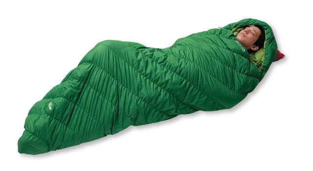 生地の繊維方向を斜め(バイアス状)に配置し、さらにステッチ部分には糸ゴムを使用することで、抜群のストレッチ性を実現した独自のシステムです。すき間のないフィット感と窮屈感の解消という相反する二つの要素を兼ね備え、就寝中の無意識な体の動きを妨げません。これまでにない寝心地のよさを得られるとともに、寝袋内で空気が自由に行き来するすき間をほとんど残さないため高い保温効率を保ちます。