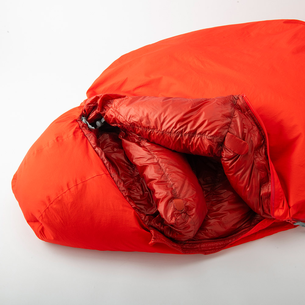 ダウンの片寄りを防ぐための隔壁を廃した、画期的な「スパイダーバッフルシステム」を搭載した防水スリーピングバッグ。縫い目の少ない構造を生かし、防水透湿性素材を使用することで高品質ダウンを濡れから守り、保温力を最大限に引き出します。モンベル・スリーピングバッグの特長である「ストレッチ」「軽量コンパクト」はそのままに、1ランク上の暖かさを実現。スリーピングバッグカバーが不要なため、荷物を少しでも減らしたいアクティビティに適しています。国内2,000m級の冬山で幅広く使用できるモデルです。