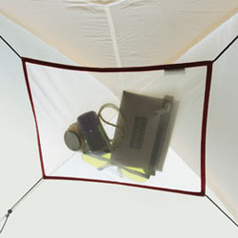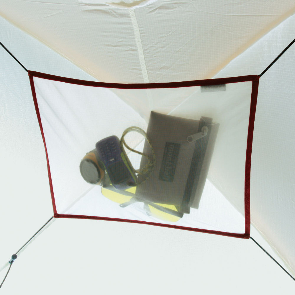 天井部分のスペースを物置として有効に利用するためのメッシュ製ロフトです。高さの調節が可能で、テント内の小物整理などに便利です。