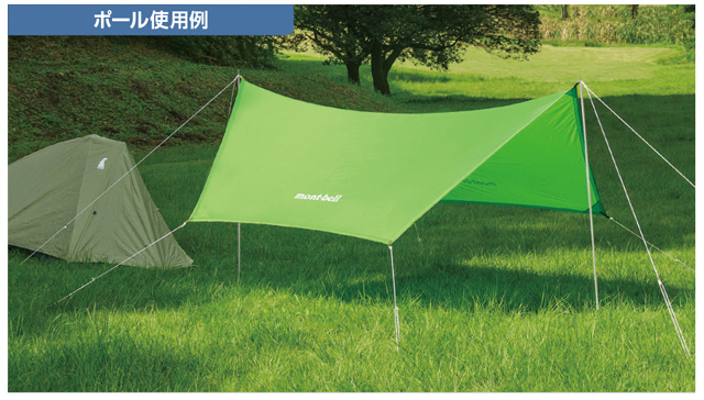 それぞれのタープに必要なポールの長さと本数をご確認の上、組み合わせてご使用ください。本体とポールは別売です。