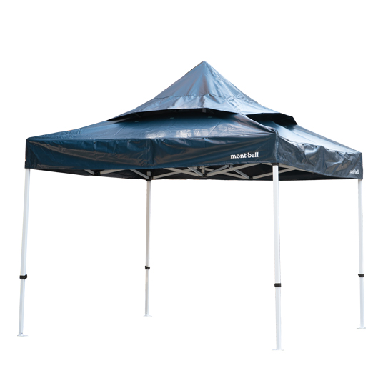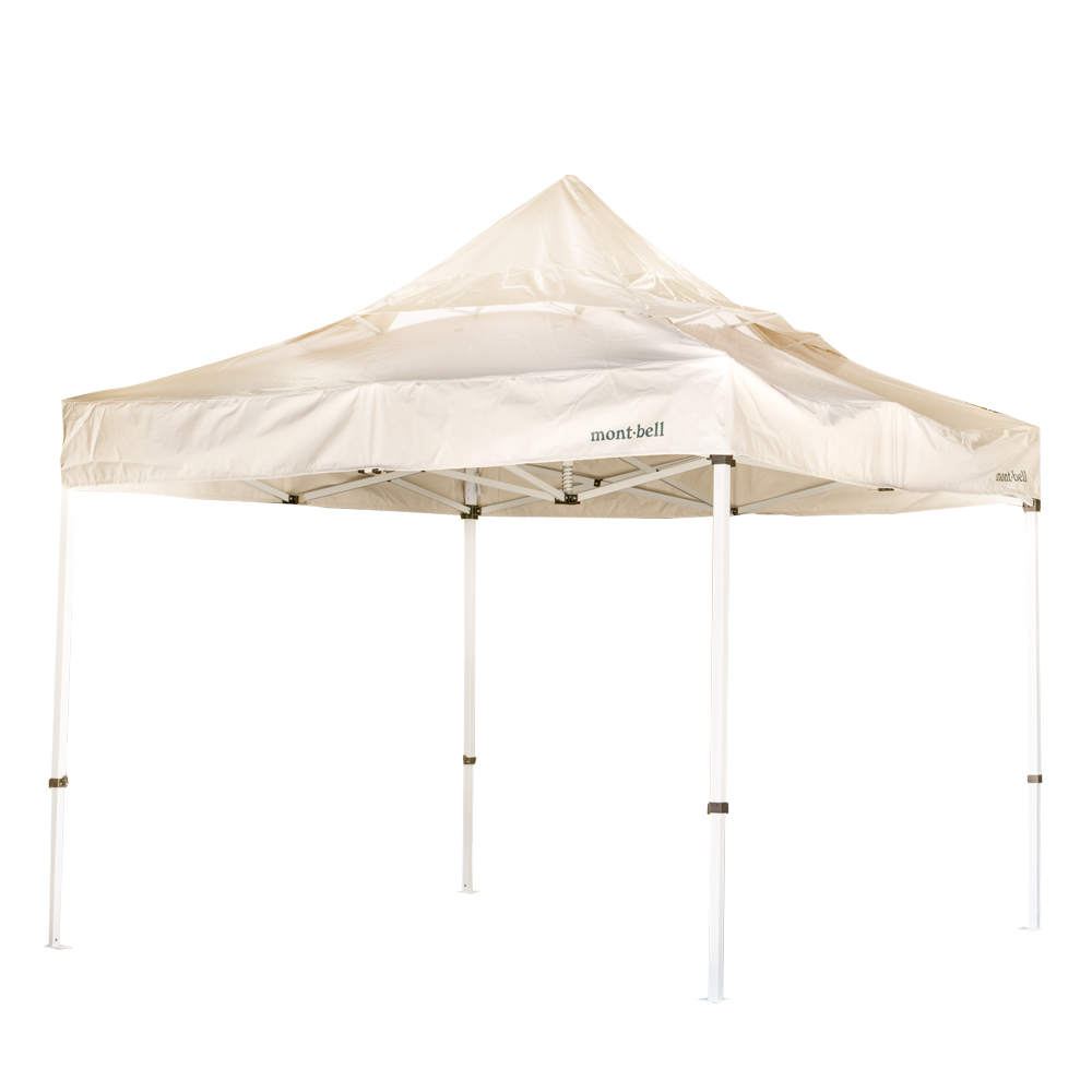 屋外でのイベントや催事などで活躍する自立式タープ。3m×3mの大型サイズながら、二人でも簡単に設営でき、高さは4段階に調節が可能です。生地がのびにくく、耐久性や難燃性に優れたターポリン素材です。