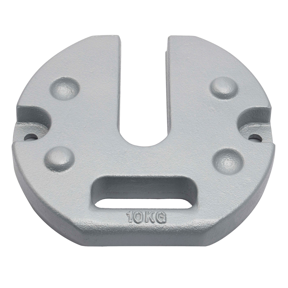 スチール製の重しです。持ち運びしやすい形状で、重ねて収納することができます。