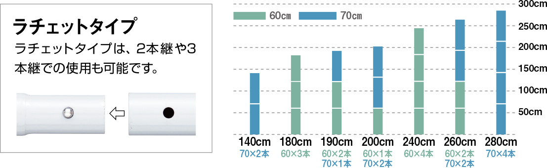 メインポールとサブポールを組み合わせる場合1:240cm×2本、120cm×4本