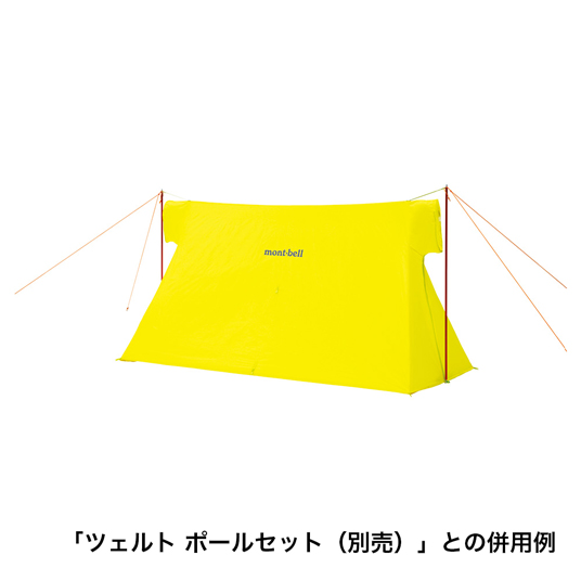 保水しにくく、伸びにくい生地を使用した軽量ツェルトです。生地に防水コーティングを施し、天頂部にもシームテープ処理を施すことで、天頂部からの漏水を防いでいます。酸欠を防ぐため、ベンチレーションは完全には閉まらないように設計しています。入口ジッパーを全開にしてタープとして使用可能。別売の「ツェルト ポールセット」「ツェルト インナーポール」「ツェルト フライシート」を併用できます。スタッフバッグ付き。