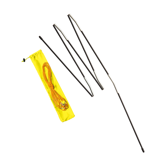 別売の「ライトツェルト」に使用することで、居住性や耐風性を高めるインナーポールです。張り綱2本とスタッフバッグが付属します。
