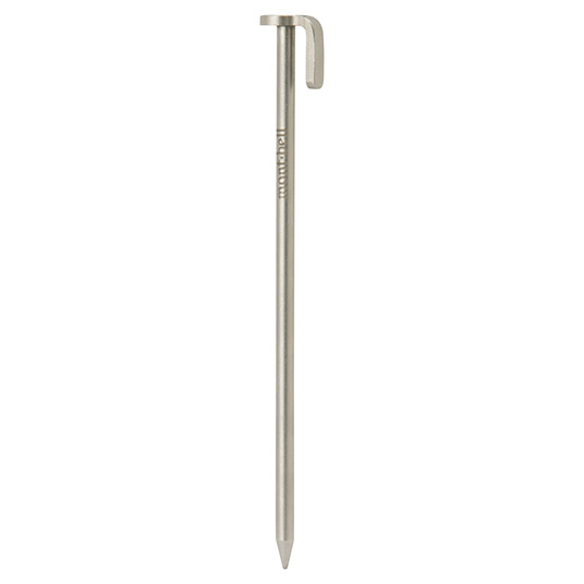 強度が高く、削れても錆びにくいステンレス鋼を使用したペグです。シンプルな形状ながらも、打ち込みやすく、張り綱をかけやすいヘッドを備えています。 また、抜く際に別のペグを引っ掛けて抜きやすい形状です。