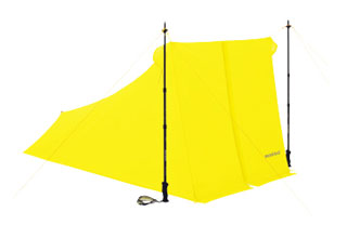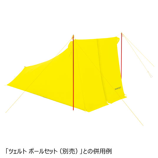 座った際に頭まわりの高さに余裕を持たせ、足元を低くした独自の形状により、居住性と軽量性を両立。充分な奥行きを持ち、緊急時には2人まで就寝ができるツェルトです。生地には防水加工を施した超軽量素材、入口にはファスナーフラップを使用。全ての縫い目にシームテープ処理を施すことで、優れた防水性を実現しています。酸欠を防ぐため、ベンチレーションは完全には閉まらないように設計しています。別売の「ツェルト ポールセット」やお持ちの「トレッキングポール」を使用して設営します。スタッフバッグ付き。