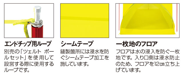 ※ 本製品は非常時の備えとして使用するため、通常のテントと異なり完全な防水性はありません。