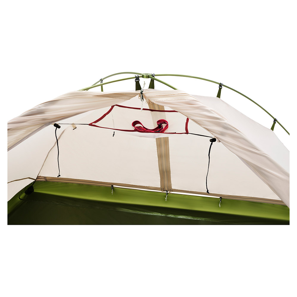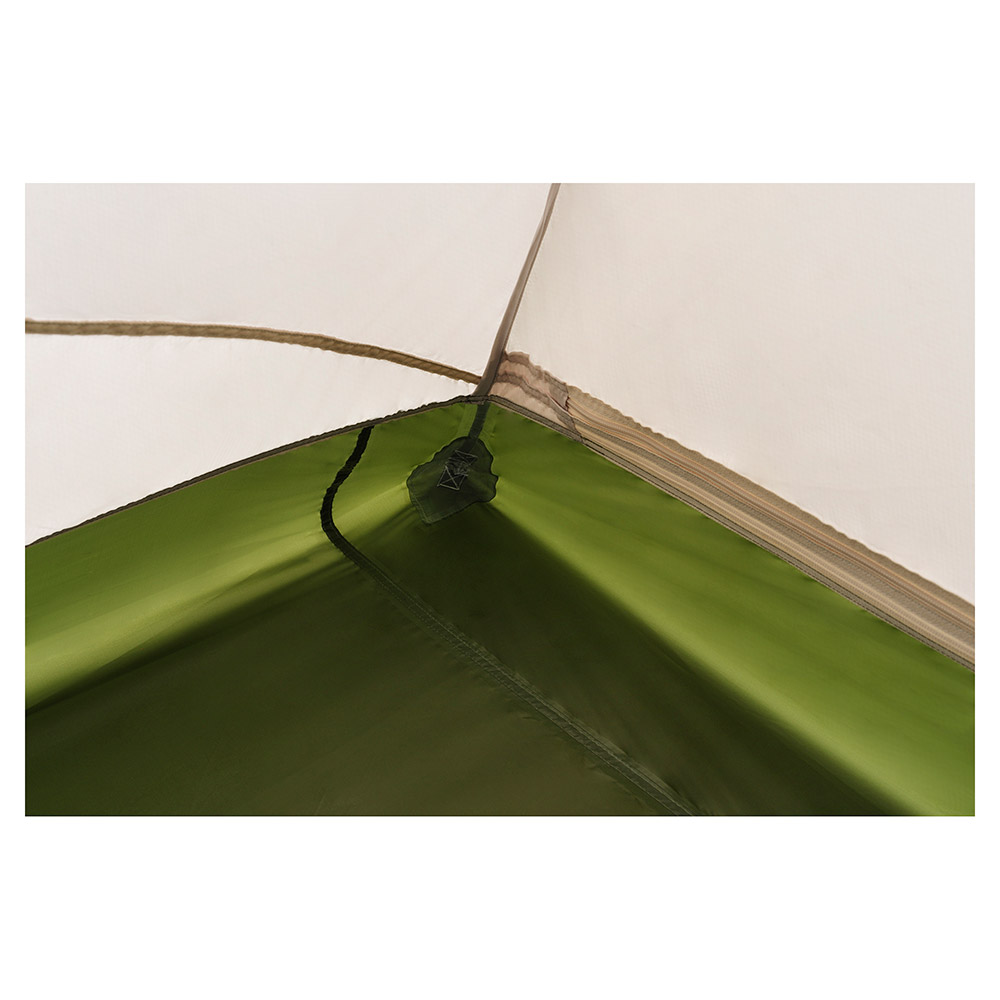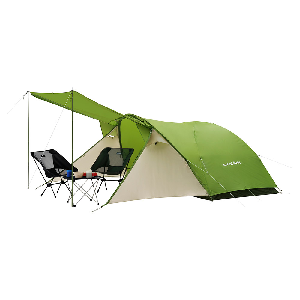 リビングスペースのひさしはゆとりある高さに設計し、出入りがしやすく、テント本体の就寝スペースも圧迫感の少ない快適な居住空間を確保しています。軽量コンパクト性にも優れ、独自のポール構造で設営も容易に行えます。少人数でのキャンプやオートキャンプの他、自転車・バイクツーリングなどにも適しています。