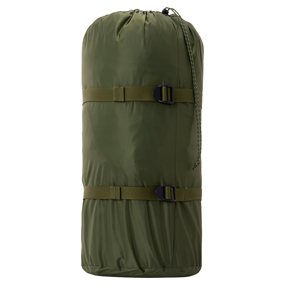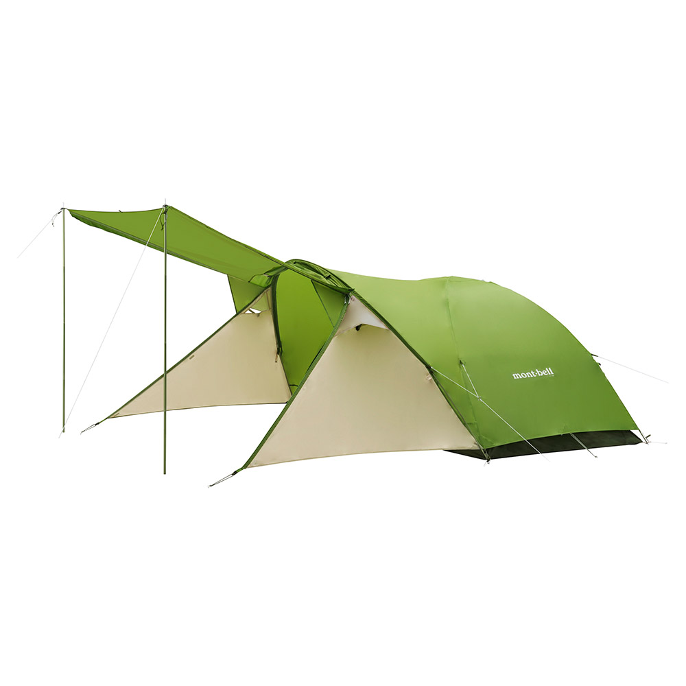 【構成】テント本体1、レインフライ1、本体ポール1組、サブポール1本、ひさし用ポール2本、Φ2mm張り綱6本、16cmアルミVペグ15本、ポール応急補修用パイプ1本