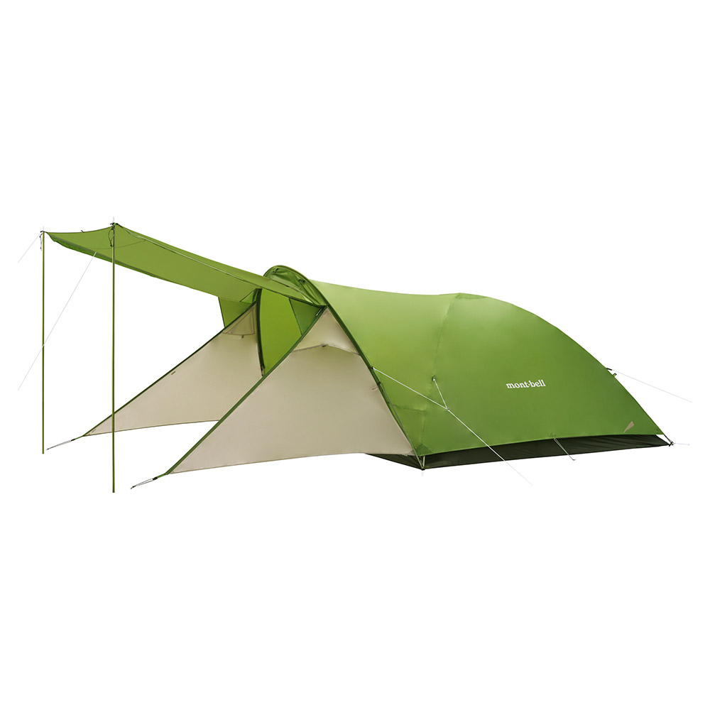 リビングスペースのひさしはゆとりある高さに設計し、出入りがしやすく、テント本体の就寝スペースも圧迫感の少ない快適な居住空間を確保しています。軽量コンパクト性にも優れ、独自のポール構造で設営も容易に行えます。ファミリーキャンプやオートキャンプなどに適しています。