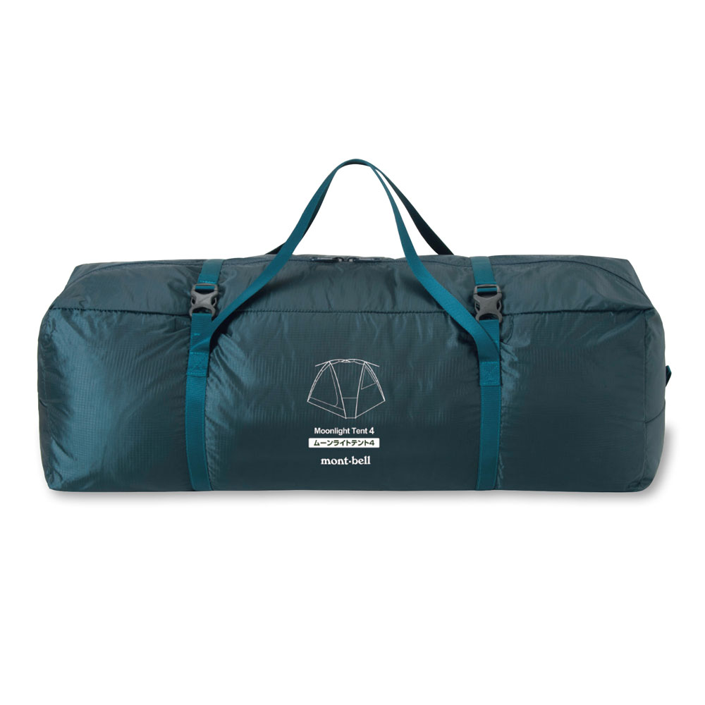 モンベルが誇るロングセラーモデル「ムーンライトテント」。月明かり(ムーンライト)の中でも簡単に設営可能というコンセプトはそのままに、大幅な軽量化と広々とした居住空間を実現しました。雨の多い日本の気候に最適な保水しにくい生地を使用し、蒸れにくい優れた通気性を備えています。キャンプやカヌーツーリングのベースとして活躍します。4人用。本体用、ポール用、ペグ用のスタッフバッグが付属します。