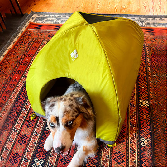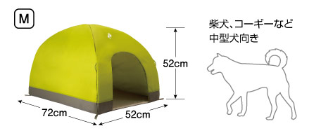 愛犬用のテント内や室内用ハウスです。簡単に折り畳めるため、キャンプや旅行などに持っていけます。慣れない場所でも、落ち着く場所を簡単に作ってあげられます。上部に換気穴を設けています。取り外し可能なマット付きで、汚れたら手洗いで洗濯ができます。Mサイズは柴犬、コーギーなど中型犬に適したサイズです。猫やその他のペットにもご利用いただけます。入口に扉はありません。
