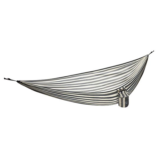 設営が簡単で、気軽にフィールドに持ち出せる軽量・コンパクトなハンモックです。本体には軽量ながらも強度に優れ、肌触りのよいサラサラとした生地を使用。木などの支柱に簡単に取り付けできるツリーストラップが付属します。使用時に小物入れにもなる収納ポケット付き。