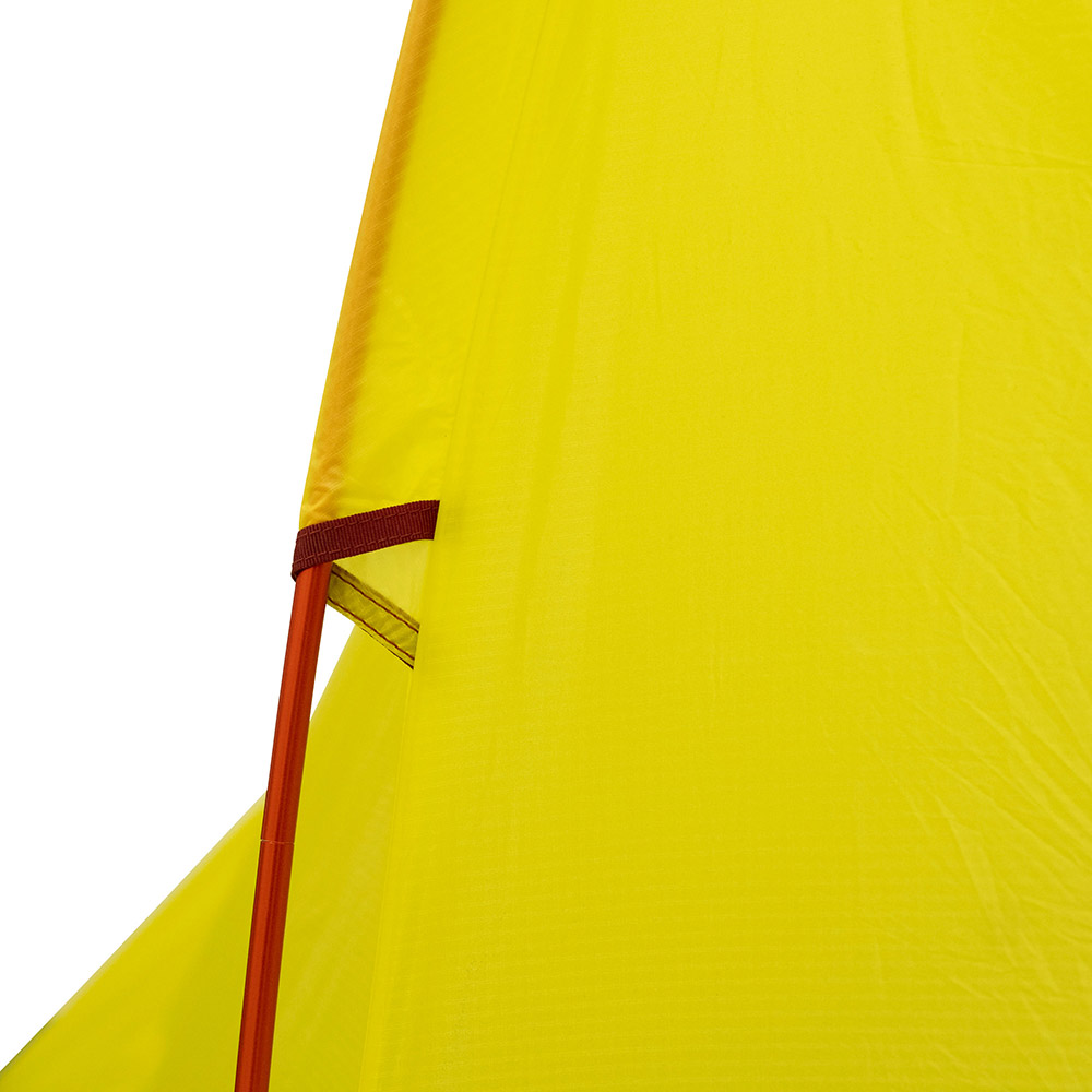 軽量・コンパクトな非自立式シェルターです。スリーブ式のシングルポール&シングルウォールで、素早い設営・撤収が可能。雨の浸入しにくいL字型の出入り口やベンチレーション(換気口)を備え、軽量コンパクト性と居住性を両立しました。シームテープ処理により防水性を高めています。本体用とポール用のスタッフバッグが付属します。※2カ所をペグで固定する必要があります。