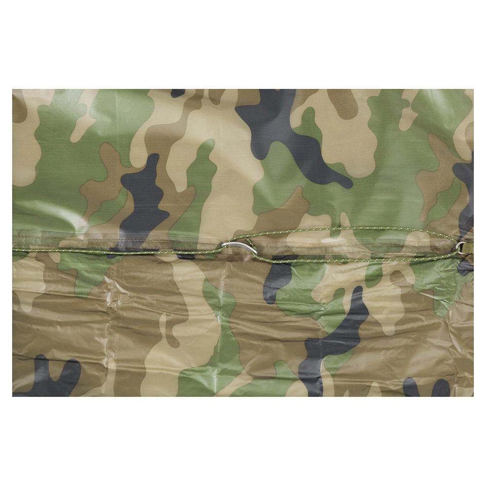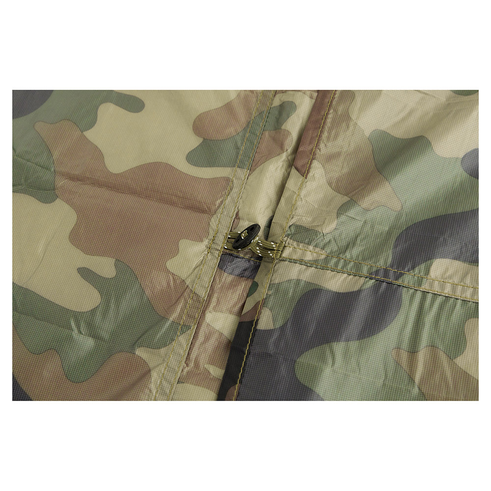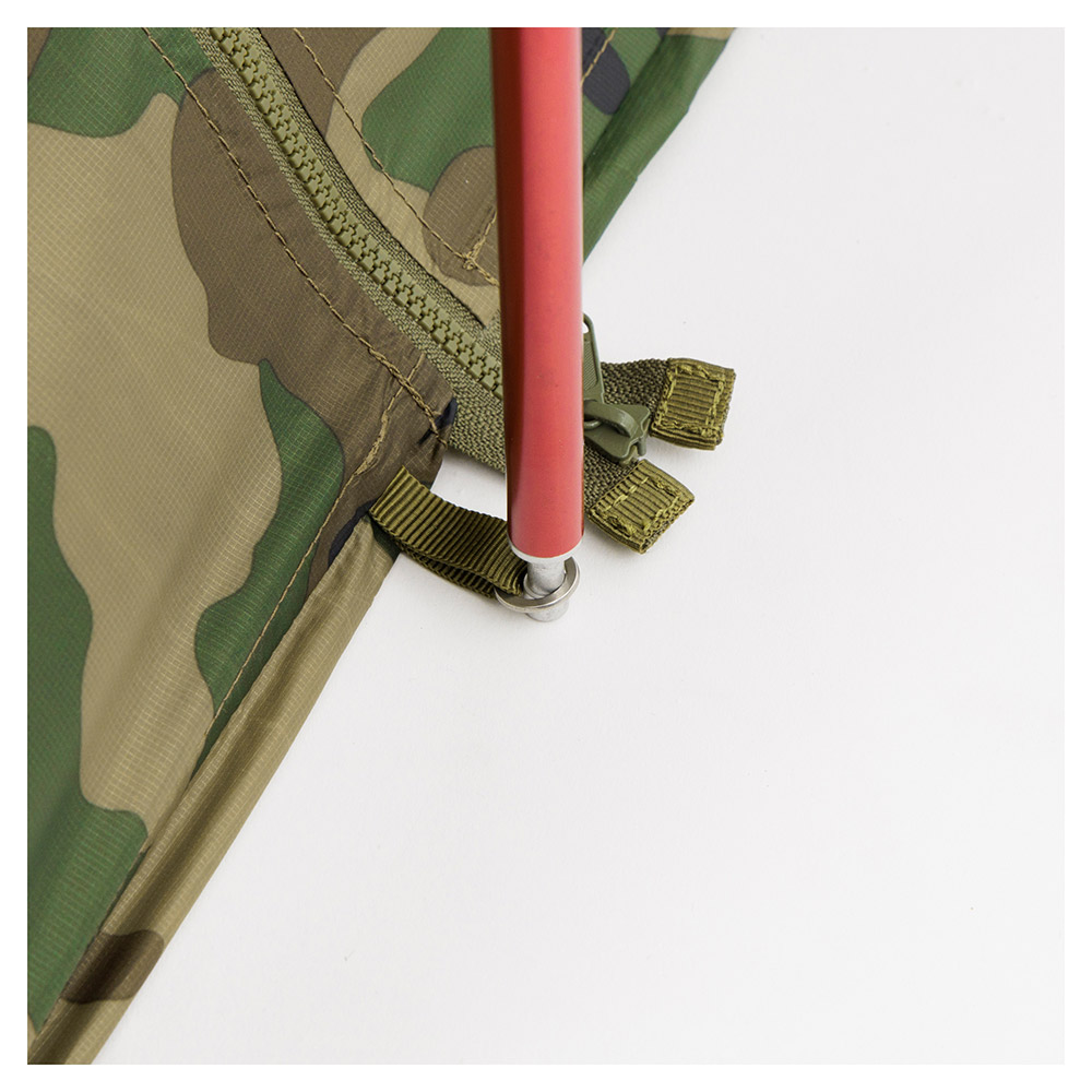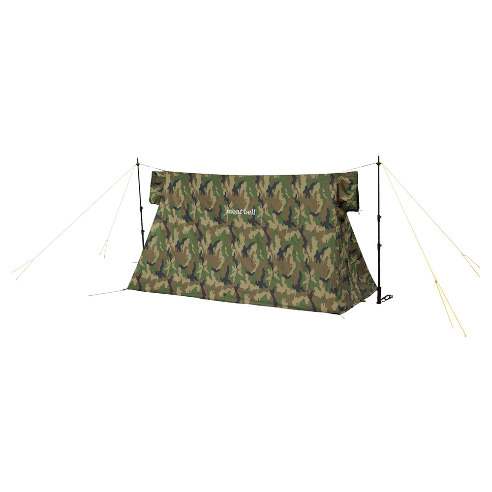 カモフラージュ柄のツェルトです。フィールドに溶け込むので野鳥観察などに適しています。防水コーティングを施した保水しにくく、伸びにくい生地を使用。天頂部にもシームテープ処理を施すことで、天頂部からの漏水を防ぎます。酸欠を防ぐため、ベンチレーションは完全には閉まらないように設計しています。入口ジッパーを全開にしてタープとして使用可能。別売の「ツェルト ポールセット」「ツェルト インナーポール」「ツェルト フライシート」を併用できます。スタッフバッグ付き。
