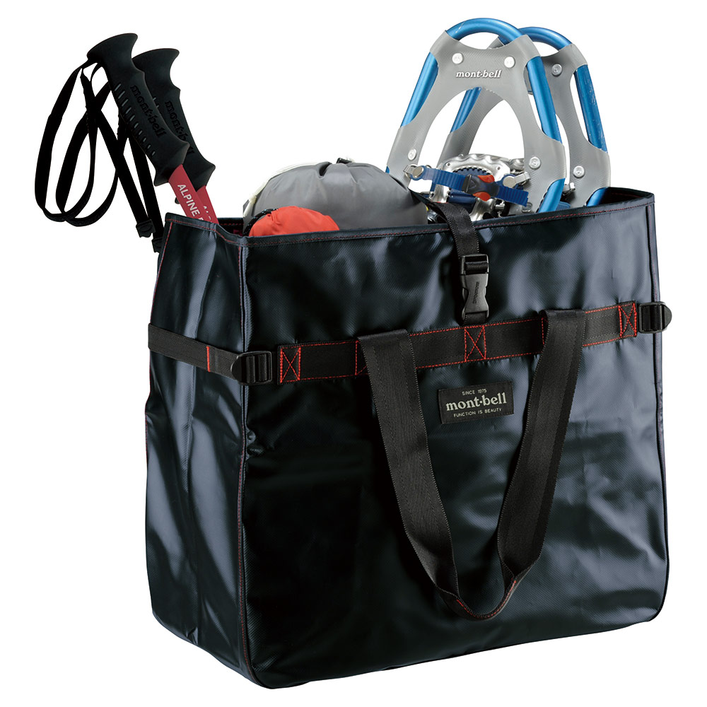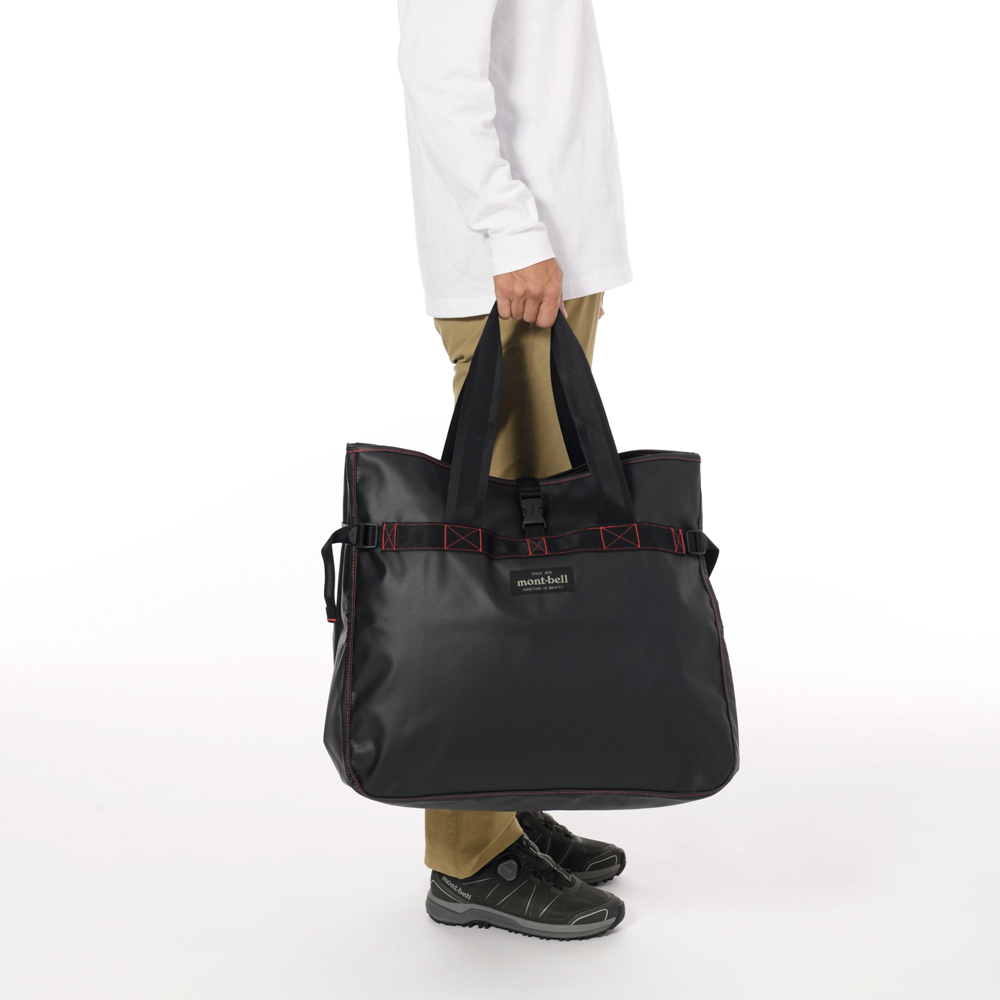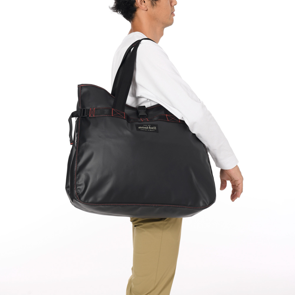 厚手で強度と耐水性に優れた生地を使用した、アウトドアでの使用に適したバッグです。上部周囲と出し入れ口のコンプレッションストラップを使って荷物の量に応じたサイズ調節が可能。ハンドグリップは肩から下げやすい長さになっています。※縫い目に防水処理は施していません。