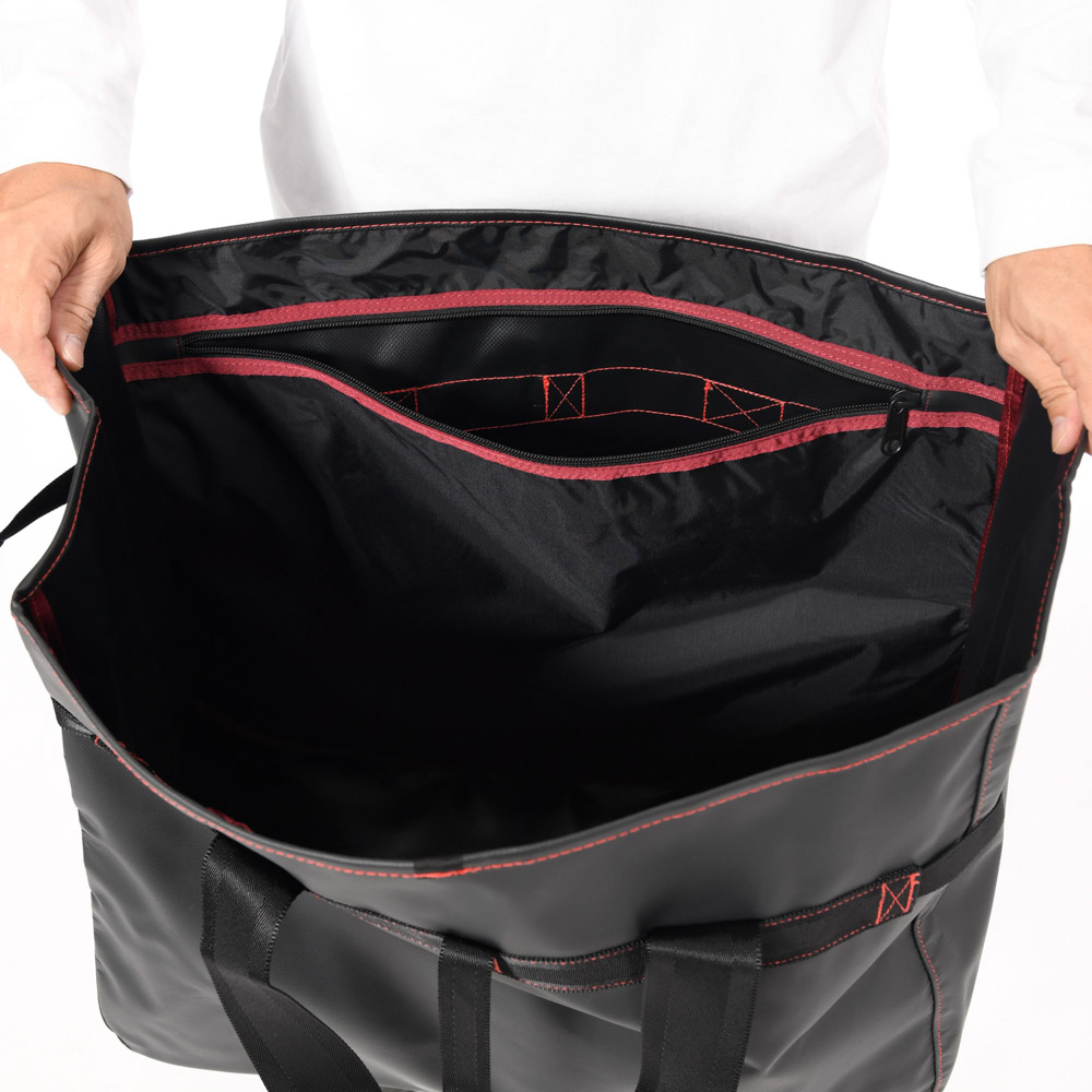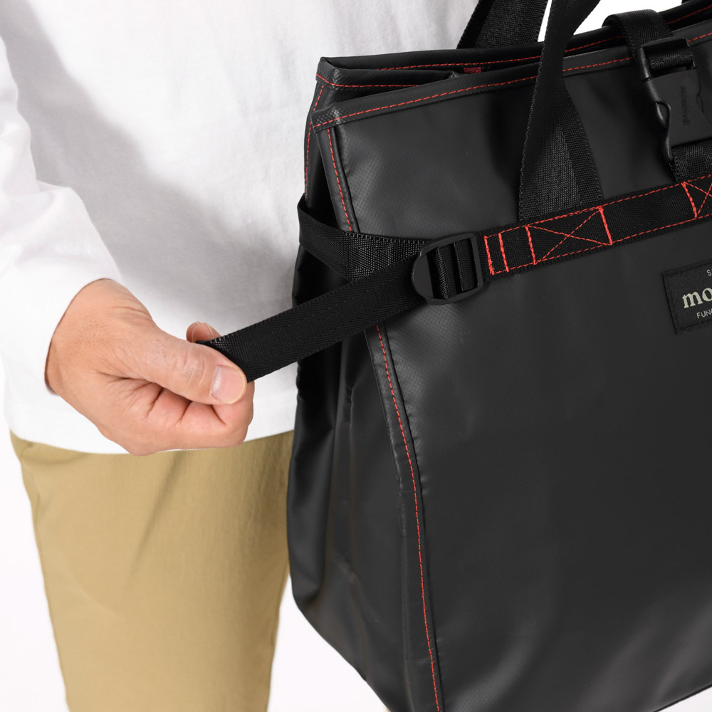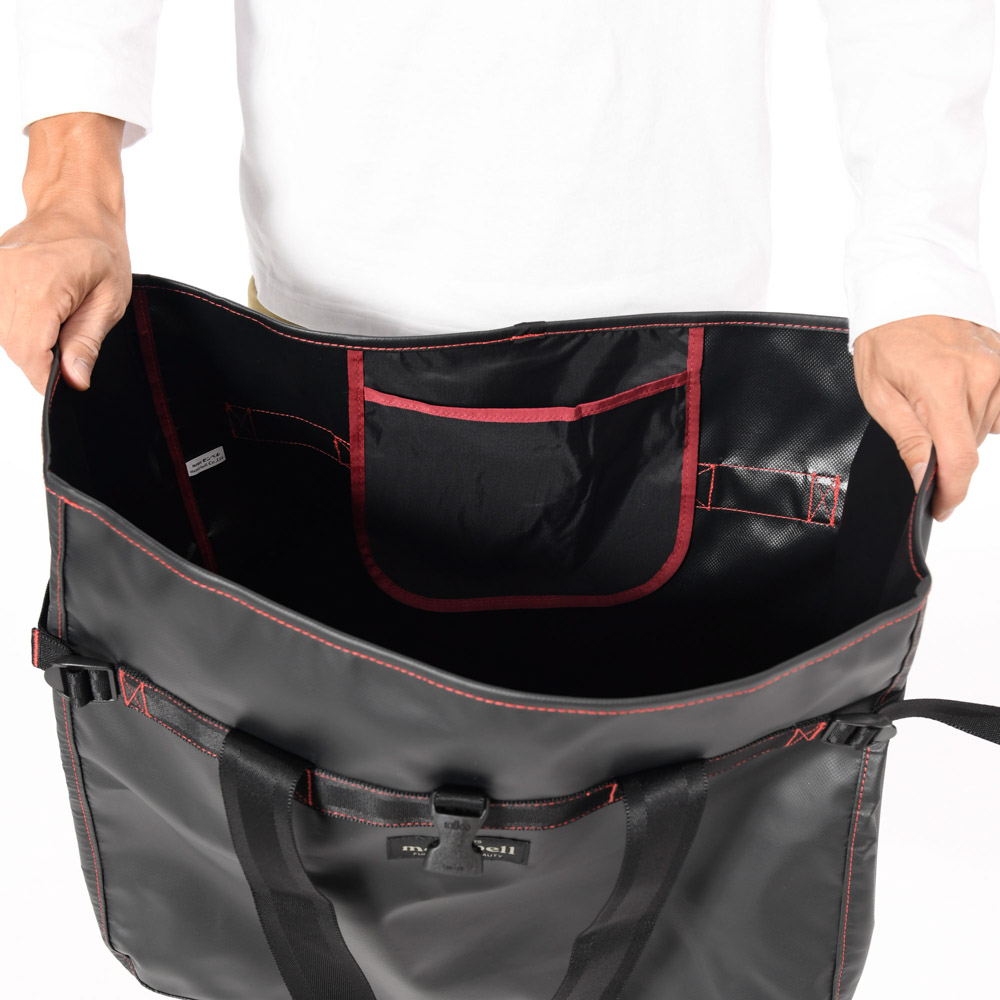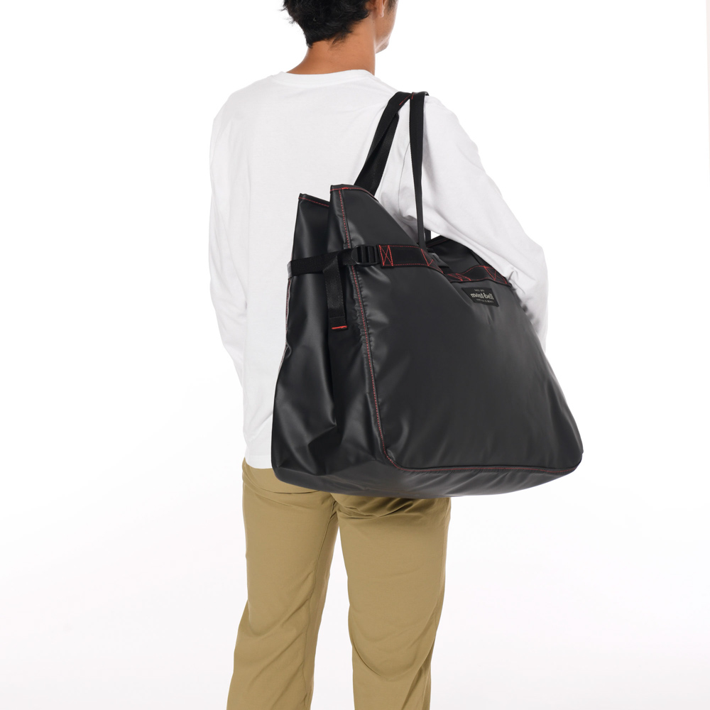 厚手で強度と耐水性に優れた生地を使用した、アウトドアでの使用に適したバッグです。上部周囲と出し入れ口のコンプレッションストラップを使って荷物の量に応じたサイズ調節が可能。ハンドグリップは肩から下げやすい長さになっています。※縫い目に防水処理は施していません。