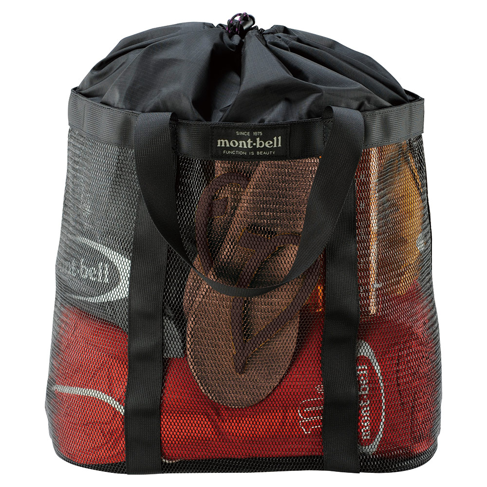 ウォータースポーツのギアなどの持ち運びに便利なメッシュ製のトートバッグです。細かなキャンプ道具を入れても外から収納物が見えるので探しやすく便利。出し入れ口はドローコードによる開閉式です。