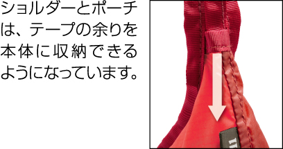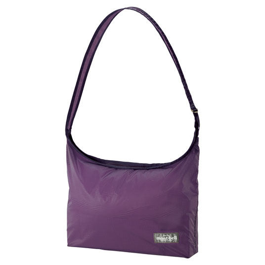 収納時は手のひらにすっぽりと収まる、超軽量ショルダーバッグです。雑誌や書類、小物の収納に便利な横長形状です。開口部にはジッパー付き。テープの長さは調節可能で、余りは本体に収納できます。A4サイズに対応しています。