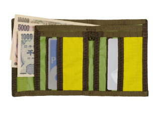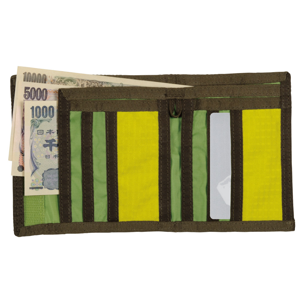 札入れを2ヶ所備え、カード入れも豊富。背面にコインポケットを設けています。ストラップなどを装着できるループ付き。