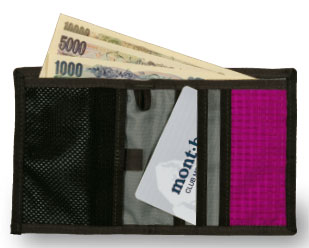 ヒップポケットにも入れやすいスリム設計。中身が確認しやすいメッシュ地のコインポケットを設けています。ストラップなどを装着できるループ付き。