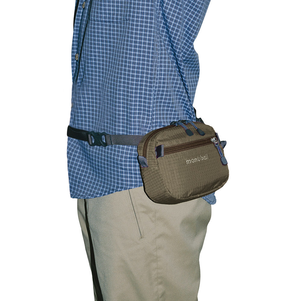 ストラップやベルトループを用いて3通りの使い方ができる横長形状のポーチです。フロントポケットと内ポケット付きで小物類を機能的に収納可能。ストラップを使用しないときは本体に収納することができます。