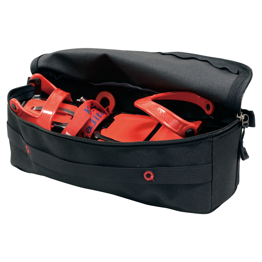 12本爪アイゼン(LXB-12、LXT-12、LXF-12)に対応します。堅ろうな素材を使用し、爪があたる部分には爪が突き抜けないよう生地を二重にし、プラスチックボードで補強しています。