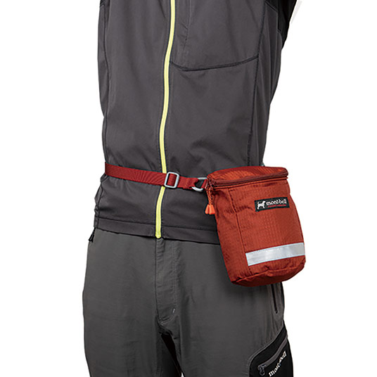 愛犬とお出かけする際に、おやつやボールなどの遊び道具を入れるのに適したポーチです。体にしっかりとフィットするショルダーストラップが付属し、長さを調節してウエストポーチとしても使用できます。