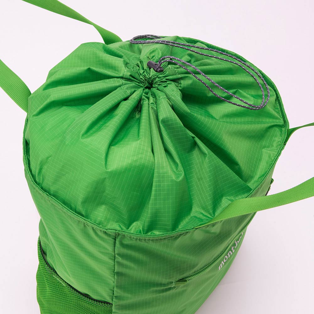開口部には、荷物が落ちないようドローコード付きフラップを設けています。