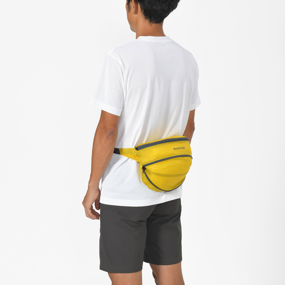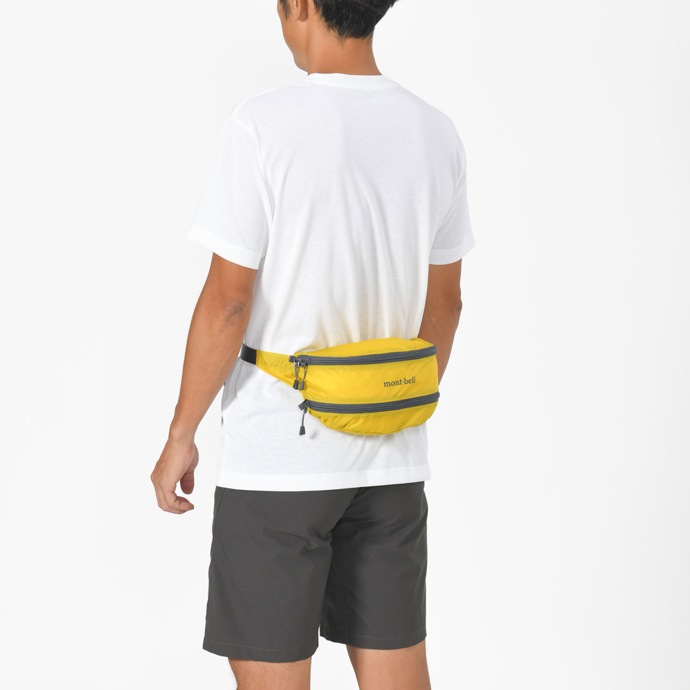 バナナの皮をむくようにジッパーを開けると、中からウエストポーチが現れます。さらに下部のジッパーを開閉することで容量を二段階に変更できます。