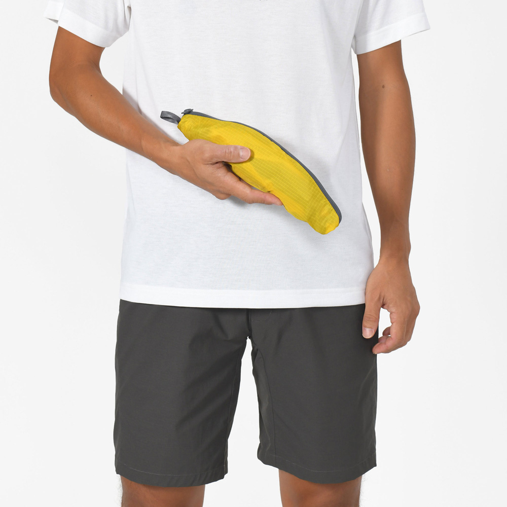 収納状態をバナナに見立てたユニークなポーチです。荷物の量に合わせて容量を2段階に変えることができます。