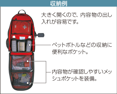 ※この製品は防災セットではありません。収納する防災用品はご自身でご用意ください。