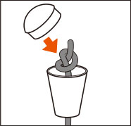 差し入れたコードの先を玉結びにして固定し、キャップをはめ込んで使用します。