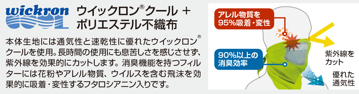 【素材】表:ウイックロン®クール[ポリエステル]、フィルター:ポリエステル不織布、レーヨン