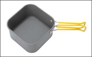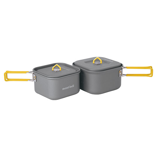 パッキングする際にデッドスペースができにくいスクエアタイプのクッカーです。「アルパインクッカー スクエア 12」と「アルパインクッカー スクエア 13」がセットになっています。市販の袋麺を調理しやすいサイズに設定しています。また、12と13を重ねて収納した際に、不快な摩擦音がしないように、フタの形状を工夫しています。