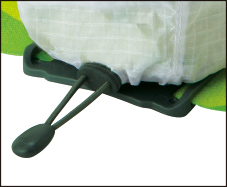 本体をヘッドランプにかぶせ、コードロック付きのひもで固定するだけの簡単操作で装着できます。
