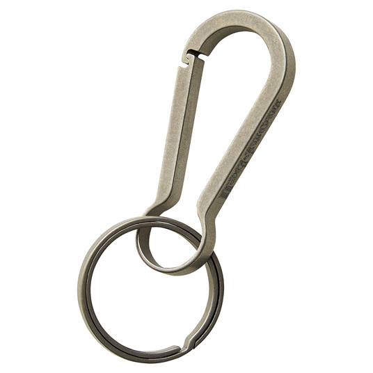 強度と軽量性に優れたチタンのバネ性を活かし、継ぎ目のない一体成型で仕上げたカラビナ型アクセサリーです。