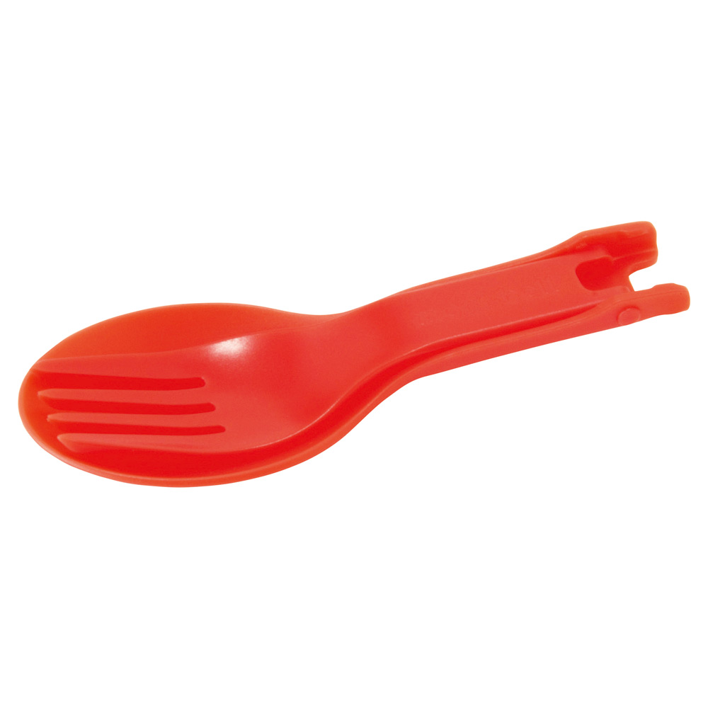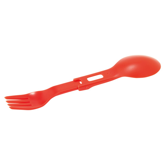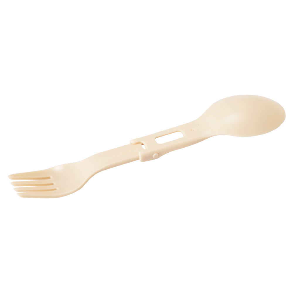 スプーンとフォークが一体になった、軽量コンパクトに折り畳みができるカトラリー。スプーンとフォークの両方を携行しなくていいので登山などに適しています。アルパインクッカー ディープ11にガス缶、バーナーと一緒に収納できます。BPA(ビスフェノールA)を含まない安心素材。