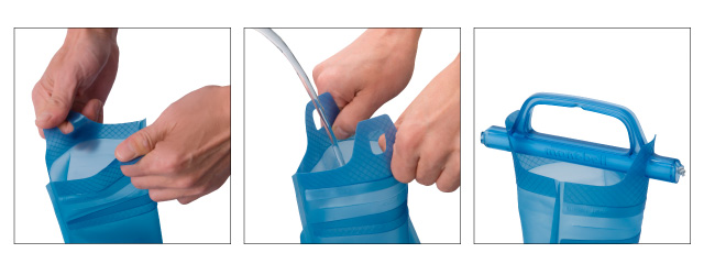 開口部が大きく開くスライドロックシステムで、注水やお手入れも簡単。スライドロックハンドルを利用して素早く乾燥できます。