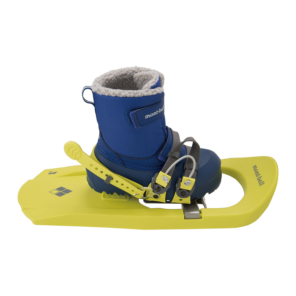 子どもでも扱いやすいように設計したキッズ専用のスノーシューです。一体型のフレームとデッキで耐久性を高め、軽い足運びを追求しました。子どもでも簡単に脱ぎ履きができ、左右2枚を重ねてコンパクトに持ち運びできます。