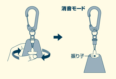 ベル本体を時計回りに回し、振り子を引き上げると消音モードになります。