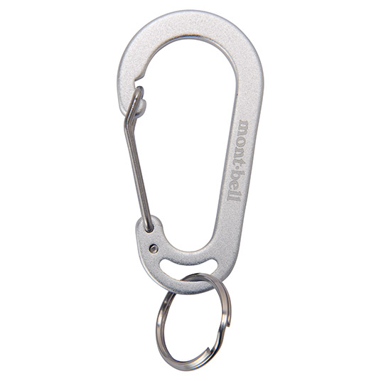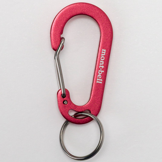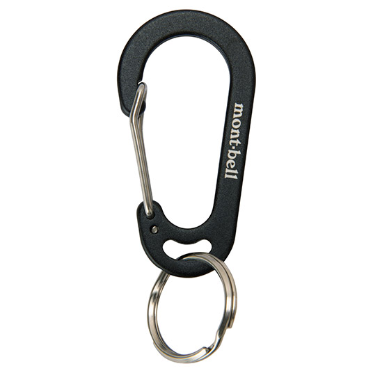 カラビナ型アクセサリーです。Oリングを通す穴を別にすることで、激しい動作でもカラビナが回転しにくい設計になっています。バッグやバックパックなどに取り付けて、キーホルダーとしてご使用ください。