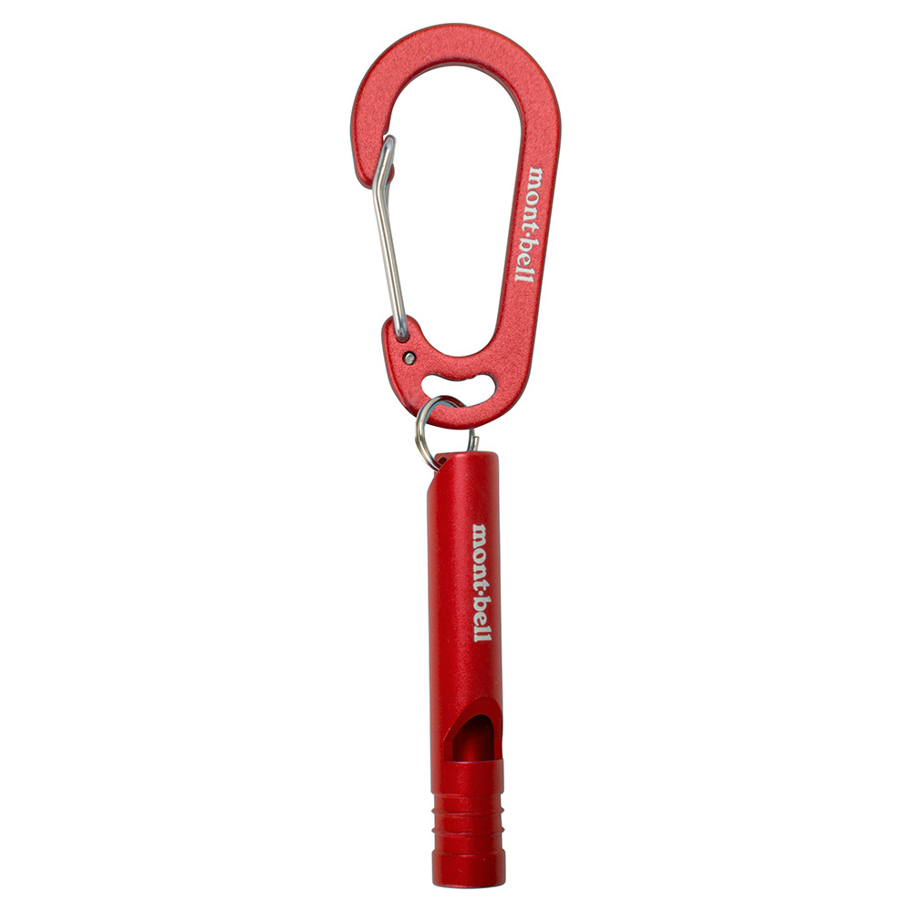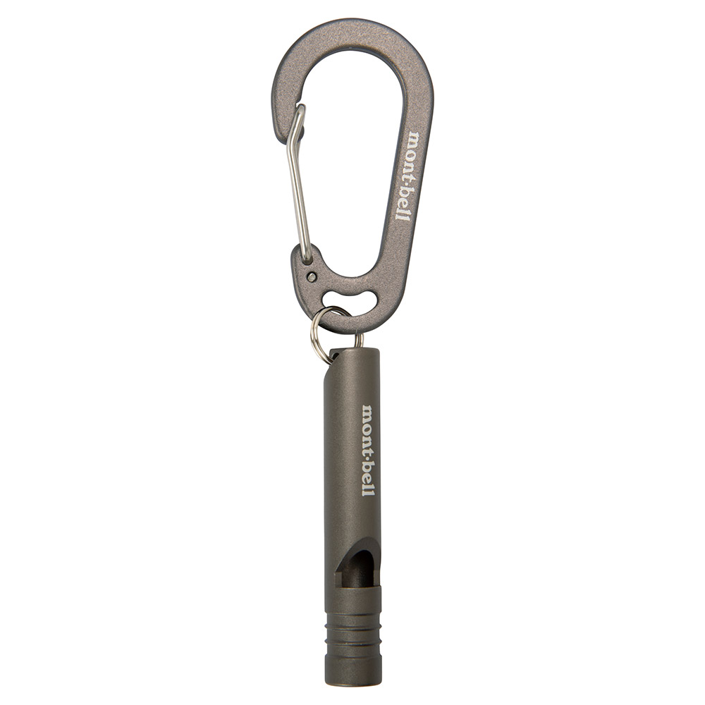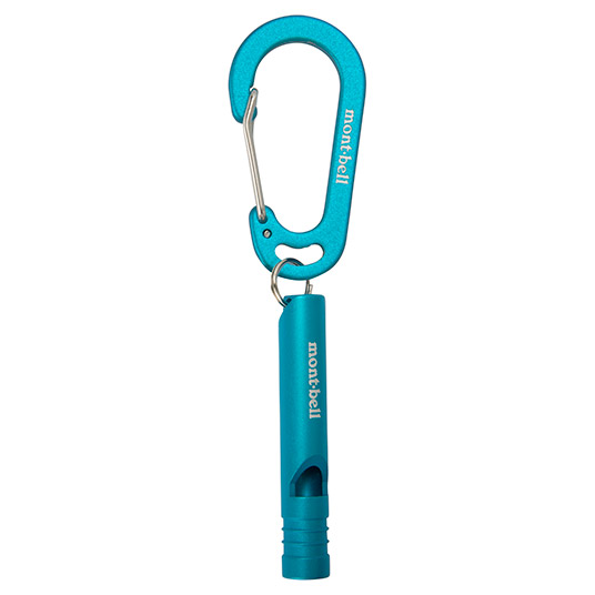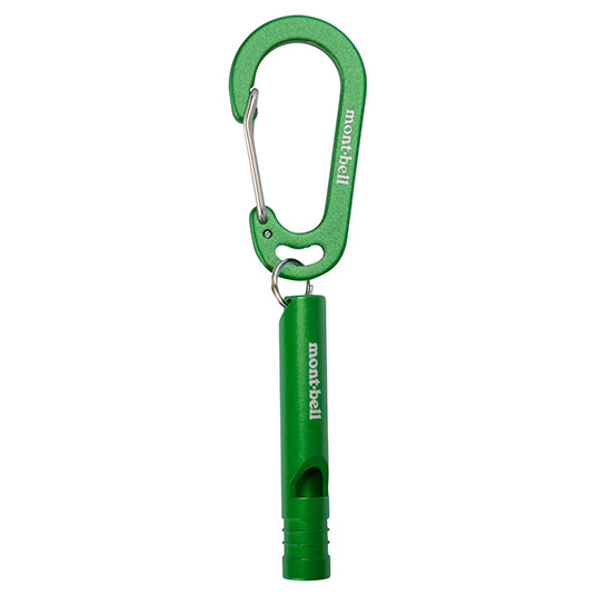 緊急時に役立つホイッスルが付いたカラビナ型アクセサリーです。Oリングを通す穴を別にすることで、激しい動作でもカラビナが回転しにくい設計になっています。