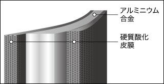 表面に硬質の酸化被膜を作るハードアナダイズド加工を施すことで、抜群の耐食・耐摩耗性を持たせています。