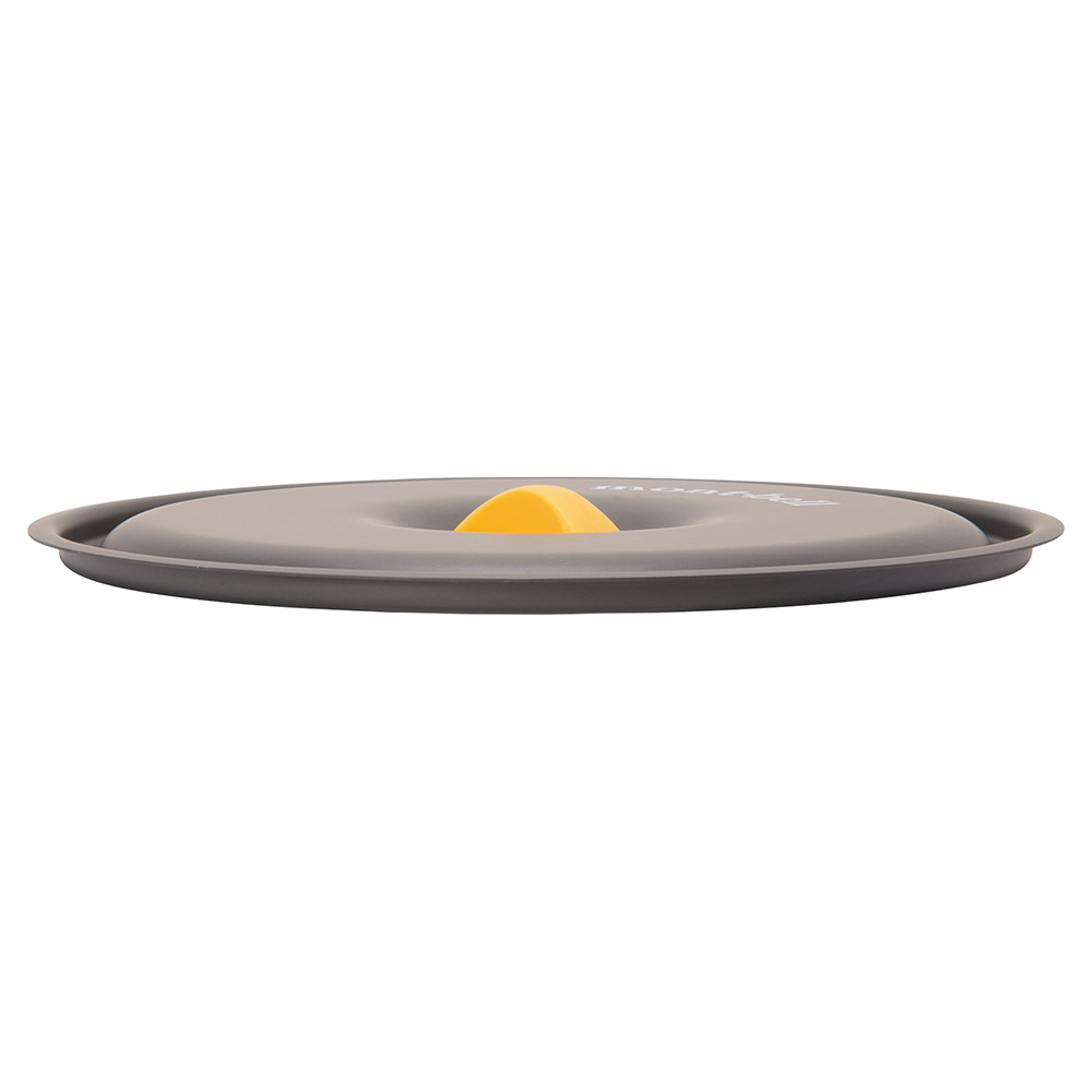 アルパインクッカーやフライパンの18シリーズで使用できる蓋です。蓋の内側のシリコンパーツを使い、クッカーの縁に掛けることができます。