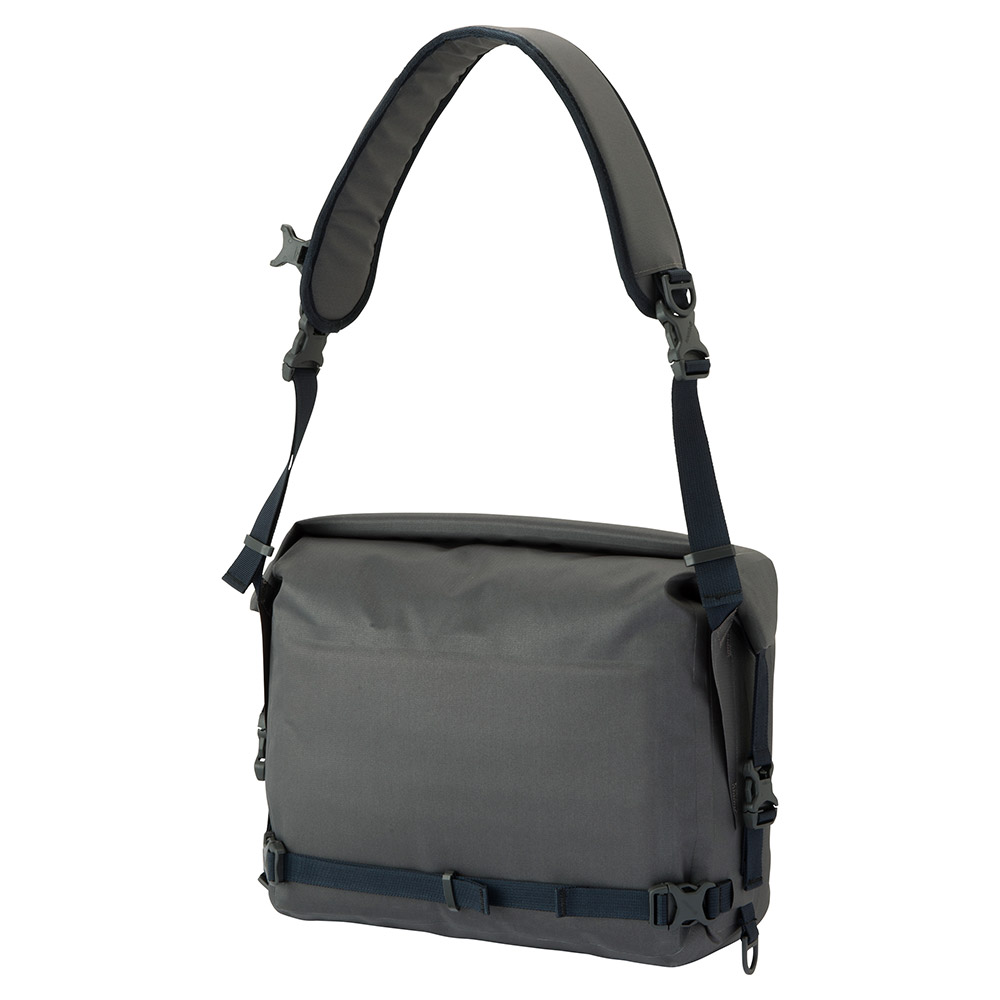 川や湖、海での立ち込みや雨天時の釣りで活躍する、防水性の高いロールアップ方式のバッグです。フィッシングギアの収納・装着に必要な多彩な機能を備えています。 ※完全防水ではありません。